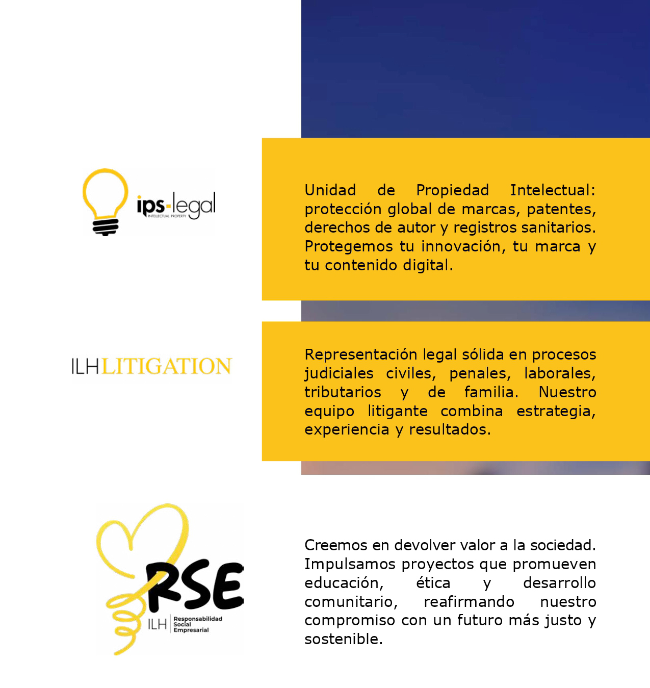 Confíe en nosotros como los aliados de sus negocios e inversiones: Ofrecemos servicios de asesoría y práctica legal para compañías y personas individuales, nacionales y extranjeras, en el proceso de inversión y constitución de nuevos negocios, elaboración y revisión de contratos mercantiles, estructura de compraventa de propiedades y títulos valores, entre otros.